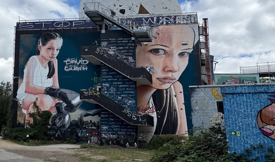 En af de mest specielle oplevelser i Berlin er at tage turen ud til Teufelsberg – en kunstig bakke i Grunewald, hvor amerikanerne under Den Kolde Krig havde en stor aflytningsstation. Stedet står i dag forladt, dækket af graffiti og street art, og med en helt særlig atmosfære.